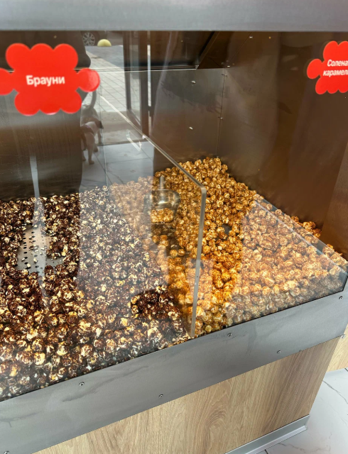 В магазине представлен большой выбор попкорна с разными начинками: сырный, брауни, шоколад, малина, фисташка, карамель, а также карамельный попкорн с кешью — этот вариант уже успел стать фаворитом многих посетителей.