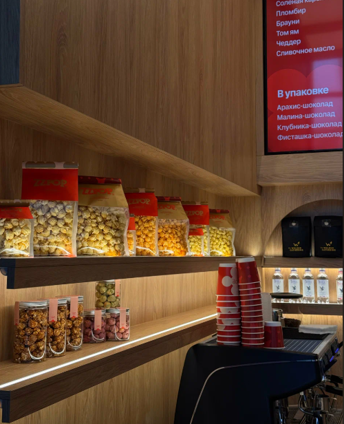 They have carefully developed the recipes to achieve the perfect result. The team has big plans ahead: developing a chain of stores, launching a franchise, and promoting gourmet popcorn in Russia.